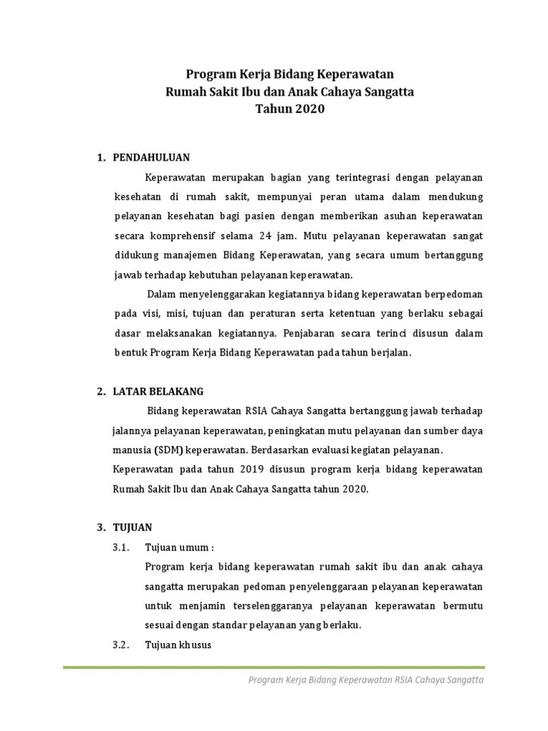 Tujuan utama dari program kerja bidang keperawatan adalah sebagai acuan dalam pelaksanaan kegiatan pelayanan keperawatan, penyediaan sarana dan prasarana, . Evaluasi program kerja bidang keperawatan tahun 2018 1. Wira firmalinda, skm, m.i.kom | 4,354. Bersama dengan kepala bidang keperawatan menghimpun usulan program kerja sebagai.